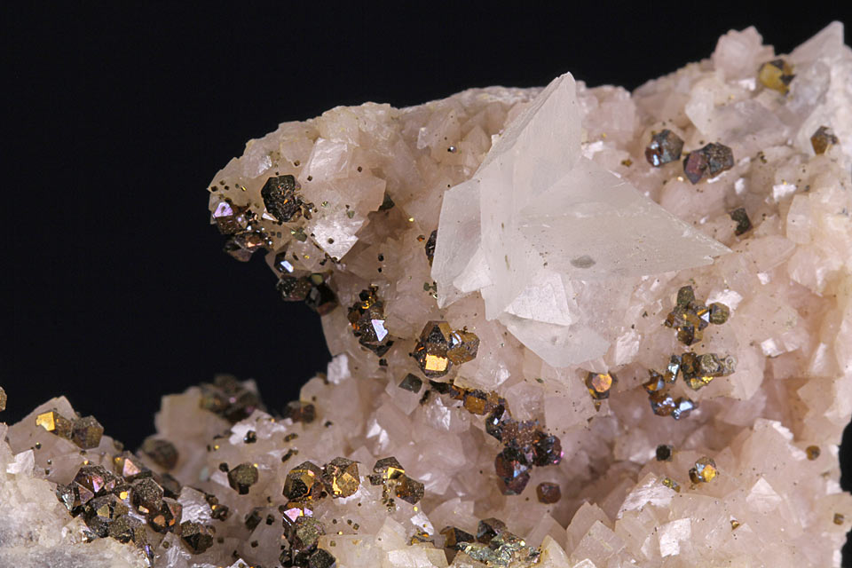 | Info: | Kleinstufe, Calcit und Pyrit auf Dolomit. |