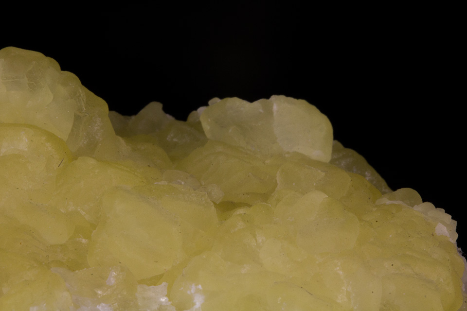 Info: Kleine Handstufe, sehr gelber Calcit auf Scherbenquarz, teilweise durch Calcit verkittet.