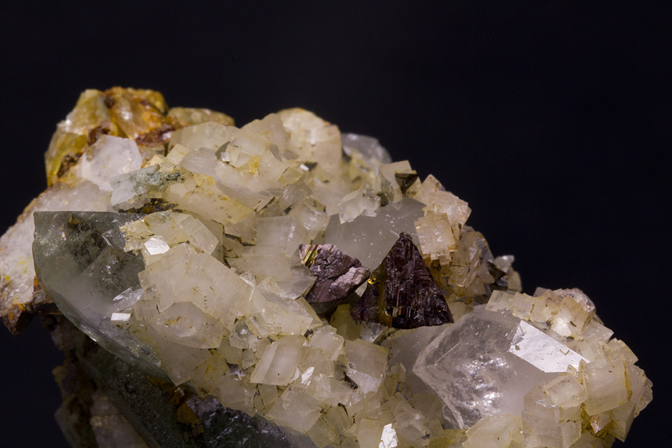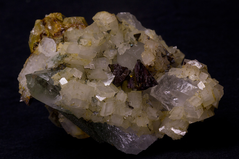 Info: | Kleinstufe, Kupferkies auf Chloritquarz mit Dolomit. |