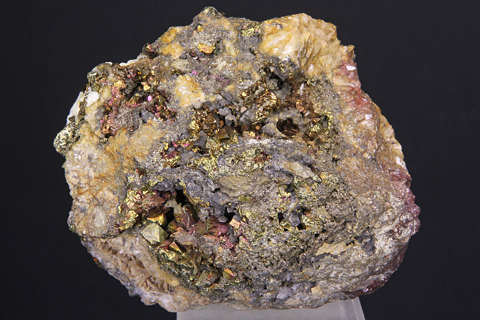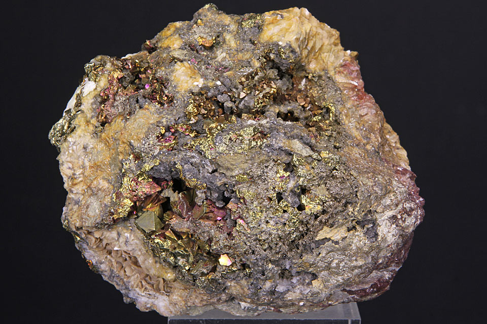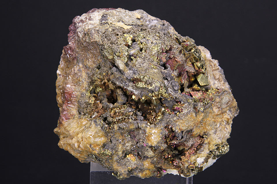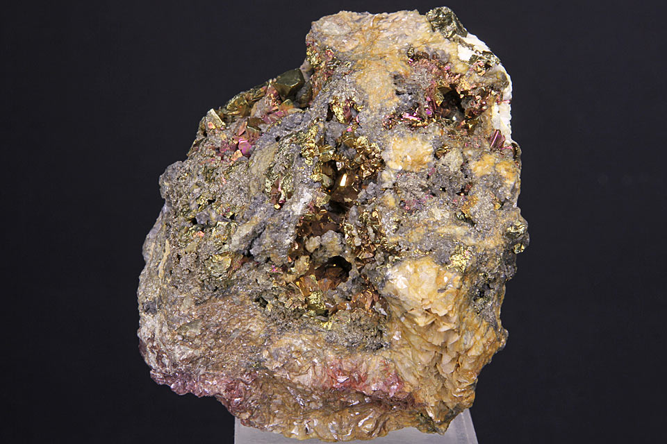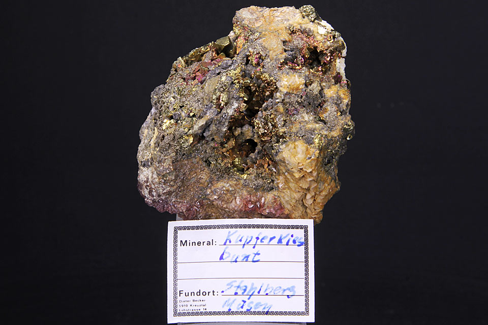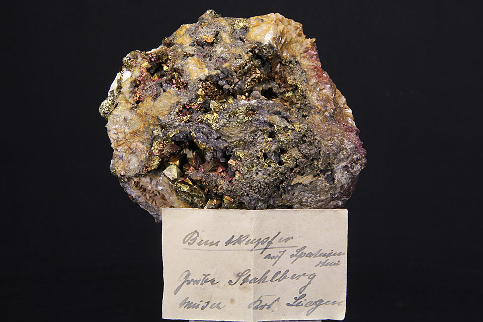 Info: | Kleine Handstufe, bunter Kupferkies und Bleiglanz, mit einem alten Zetteln. |