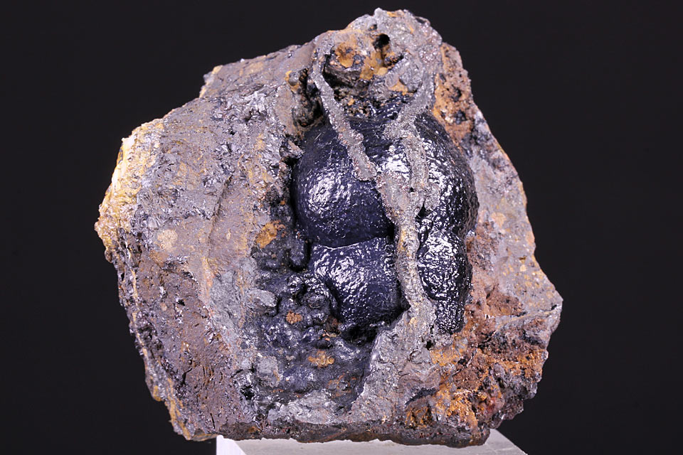 Kleine Stufe, Limonit Glaskopf, überzieht vermutlich große Lepidokrokit Kugel (20 mm)! |